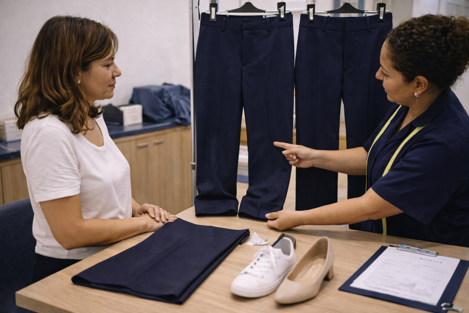 Como ajustar a barra da calça para usar com diferentes tipos de sapato é uma dúvida mais importante do que parece. Você veste a peça, gosta do tecido, da modelagem e até do look montado, mas algo não encaixa. Muitas vezes, o problema não está na calça nem no sapato. Está no comprimento entre os dois. E quando esse detalhe é resolvido, tudo muda. Ajustar a barra da calça para usar com diferentes tipos de sapato faz o visual parecer mais equilibrado, mais elegante e muito mais intencional. Se você já sentiu que uma peça bonita nunca ficava perfeita com certos calçados, vale continuar lendo. Por que ajustar a barra da calça para usar com diferentes tipos de sapato faz tanta diferença A barra não é apenas o final da peça. Ela influencia a silhueta, o movimento da roupa e a forma como o sapato aparece no look. Quando o comprimento está errado, a calça pode arrastar, dobrar demais, esconder o calçado ou encurtar visualmente a perna. Já quando a barra está certa, o resultado fica mais leve, mais elegante e muito mais coerente com a proposta da produção. É esse encontro entre roupa e sapato que faz o caimento funcionar de verdade. Como ajustar a barra da calça para usar com diferentes tipos de sapato no dia a dia O primeiro passo é simples: pensar no uso real da peça. Antes de ajustar, vale observar: Essas respostas são o que definem um ajuste inteligente. Porque a barra ideal não nasce de uma regra genérica. Ela nasce da sua rotina. Barra da calça com tênis: o que observar Quando a calça será usada com tênis, o ideal é buscar um comprimento que mantenha a leveza do visual e evite excesso de tecido. Se a barra sobra demais, o look pode parecer pesado e desleixado. Se fica curta demais, também pode quebrar a proporção da peça. Com tênis, a barra costuma funcionar melhor quando: Se você quer uma peça prática e bonita ao mesmo tempo, esse ponto faz toda a diferença. Barra da calça com salto: quando o comprimento muda Com salto, a lógica é outra. A barra pode ser mais alongada para valorizar a silhueta e criar um efeito mais elegante. Esse tipo de ajuste costuma funcionar muito bem em modelos como flare, pantalona e alfaiataria. O salto ajuda a sustentar o comprimento maior e faz o visual ganhar presença. Mas atenção: elegante não é o mesmo que arrastando. A barra deve ficar próxima ao chão, sem prender no pé nem desgastar a bainha. É esse equilíbrio que faz a peça parecer sofisticada de verdade. Barra da calça com sapatilha, mocassim ou rasteira Sapatos baixos pedem um olhar especial, porque eles não elevam a peça como o salto faz. Nesse caso, ajustar a barra da calça para usar com diferentes tipos de sapato significa evitar que o tecido pese no visual. A peça precisa acompanhar o corpo com leveza e manter um bom acabamento. Com sapatilha, mocassim ou rasteira, vale observar se: Esse tipo de ajuste ajuda a roupa a funcionar melhor no cotidiano e evita aquela sensação de peça sempre “quase certa”. Cada modelo de calça pede uma decisão diferente Não existe uma única resposta para todas as peças. O jeito de ajustar a barra da calça para usar com diferentes tipos de sapato depende muito da modelagem. A flare pede um comprimento mais alongado. A pantalona precisa preservar fluidez sem arrastar. A alfaiataria exige precisão. O jeans reto pede equilíbrio. Já a legging e os modelos mais ajustados costumam funcionar melhor com acabamento mais limpo no tornozelo. Por isso, o melhor ajuste não é só sobre o sapato. É sobre a relação entre o sapato, o modelo da calça e o efeito que você quer manter. O erro mais comum ao tentar adaptar uma única barra para tudo Muita gente tenta fazer uma mesma barra servir para todos os calçados. E é aí que surgem as frustrações. Quando se busca um comprimento que funcione com salto, tênis, rasteira e mocassim ao mesmo tempo, o risco é ficar no meio do caminho. A peça não fica perfeita com nenhum deles. Em alguns modelos, até existe uma margem de versatilidade. Mas em outros, principalmente flare e pantalona, o ideal é escolher com clareza o uso principal da peça. Se você está em dúvida, pense no que acontece de verdade no seu armário, não no look idealizado. Isso já muda completamente a decisão. Como saber se a barra da calça precisa de ajuste O espelho dá sinais claros quando algo não está funcionando. Preste atenção se: Se isso acontece, a peça provavelmente não está ajustada para os tipos de sapato que você realmente usa. O que o ajuste certo muda no visual Quando a barra acompanha bem o sapato, a transformação aparece na hora. A roupa ganha caimento, o corpo parece mais proporcional e o look transmite mais intenção. Além disso, a peça se torna mais confortável de usar, porque passa a acompanhar seus movimentos sem atrapalhar. É aquele tipo de detalhe que deixa tudo mais bonito sem precisar de exagero. E, muitas vezes, é justamente isso que faltava para uma calça parada voltar a ser uma das mais usadas do armário. Na Tem Jeito, o ajuste é pensado para a sua rotina Na Tem Jeito, ajustar a barra da calça para usar com diferentes tipos de sapato não é só uma questão de medida. É uma forma de fazer a roupa funcionar melhor para a sua vida real. Cada peça merece um olhar que considere estilo, caimento, conforto e frequência de uso. Porque quando o ajuste respeita esses pontos, a roupa deixa de ser apenas bonita e passa a ser realmente útil, elegante e segura no corpo. Conclusão Ajustar a barra da calça para usar com diferentes tipos de sapato é o que faz a peça ganhar equilíbrio, elegância e praticidade no dia a dia. Quando o comprimento conversa com o calçado certo, o look muda, a silhueta melhora