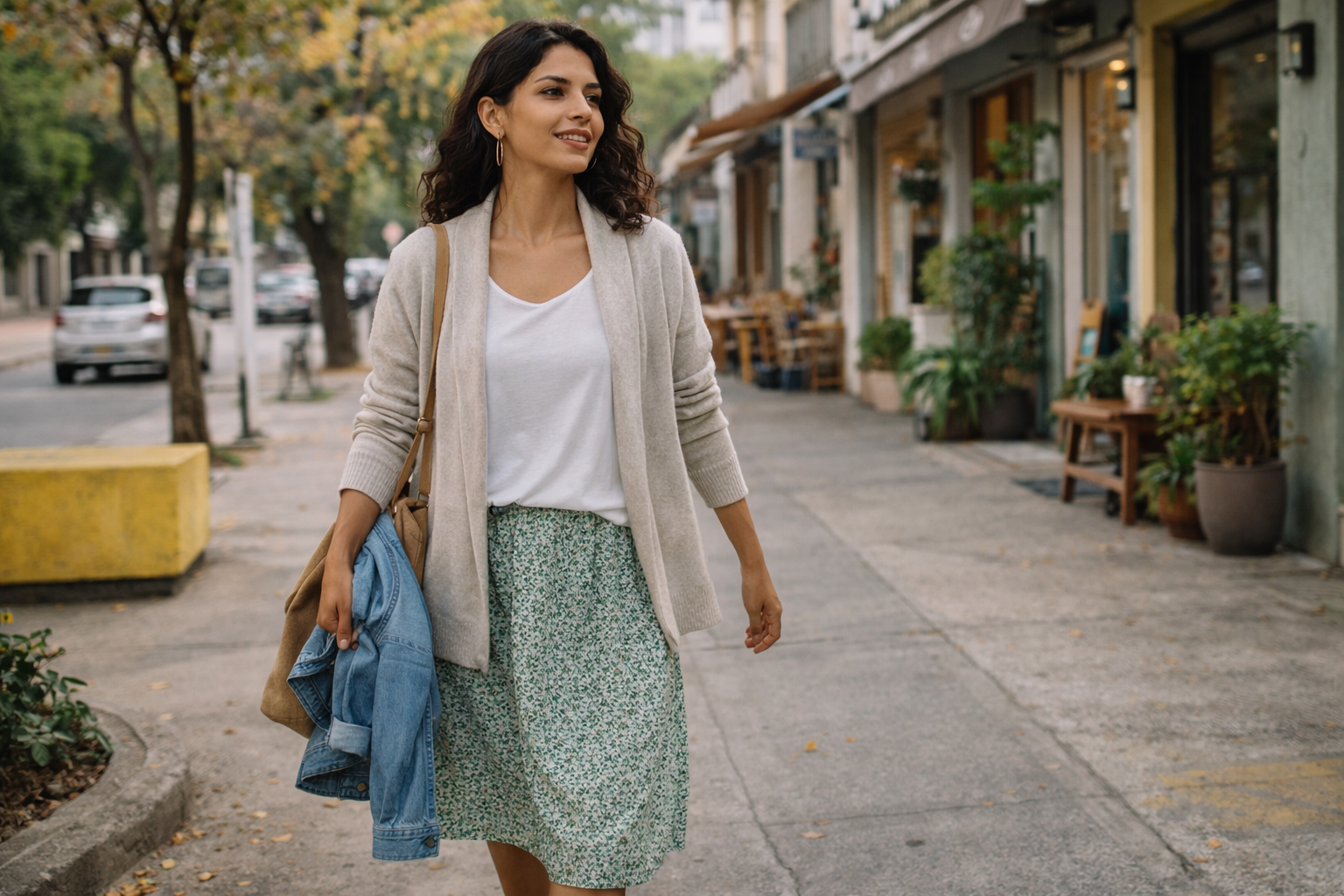 Essa mistura cria um visual de meia-estação com personalidade, conforto e praticidade.
