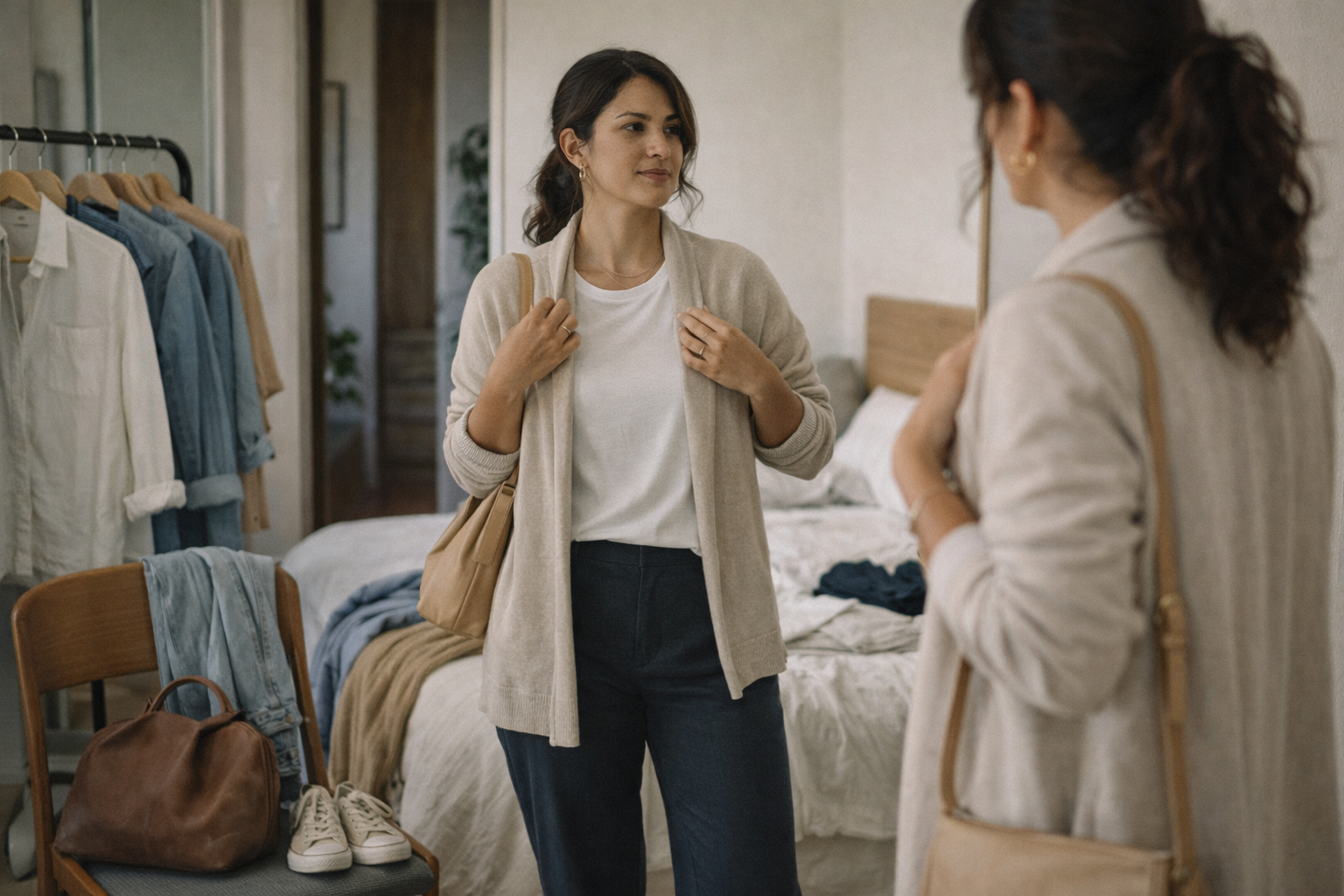 Antes de combinar qualquer peça, observe seu armário com intenção. Em vez de olhar só para o que falta, repare no que já existe e ainda tem potencial.